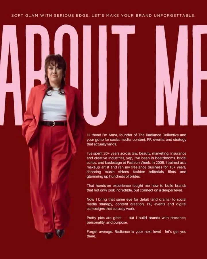 Because most brands don’t have a content problem, they have a strategy problem. I don’t believe in posting for the sake of it, chasing trends that don’t convert, or creating marketing that looks good but does nothing for your business. At The Radiance Collective, everything is intentional, from your positioning and messaging to how your brand shows up, grows, and is ultimately chosen. This is about doing it properly, with strategy, direction, and execution that actually works, for brands ready to show up with clarity, confidence, and authority.